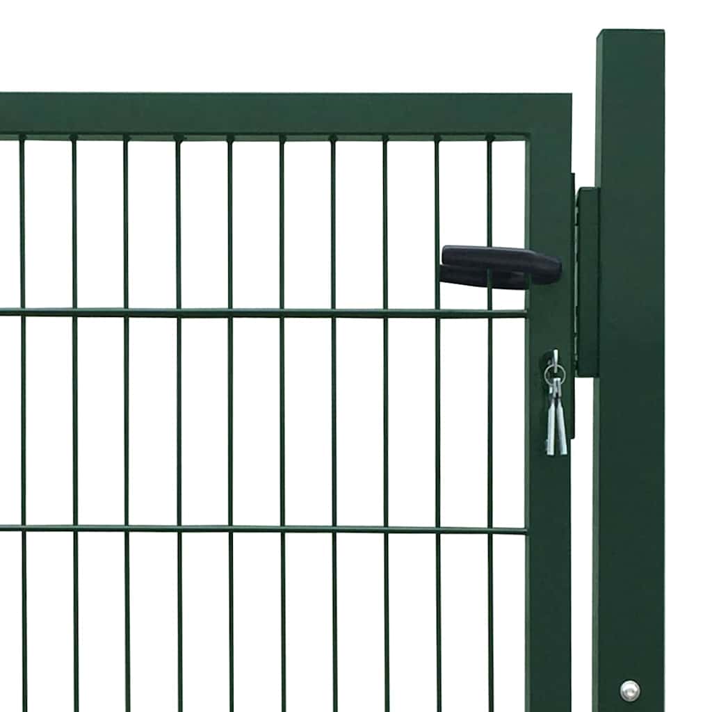 Esta puerta de valla metálica será una entrada práctica, con estilo contemporáneo para aislar su jardín del mundo exterior. Muy estable y duradera, la puerta de vallado formará una barrera práctica de seguridad para tu jardín, patio o terraza. Soldada con alambres verticales gruesos y alambres dobles horizontales para dar rigidez adicional, nuestra puerta del jardín proporcionará un alto grado de seguridad, formando al mismo tiempo una entrada fabulosa a tu propriedad. Fabricada en acero pesado, la compuerta tiene un revestimiento en polvo contra la corrosión y el óxido. Esta puerta de valla metálica viene con bisagras resistentes para una instalación fácil y un sistema de bloqueo resistente con 2 llaves que también se incluyen en la entrega. ¡Esta puerta de jardín ofrece una gran combinación de estilo, fuerza, estabilidad y resistencia a la corrosión!
