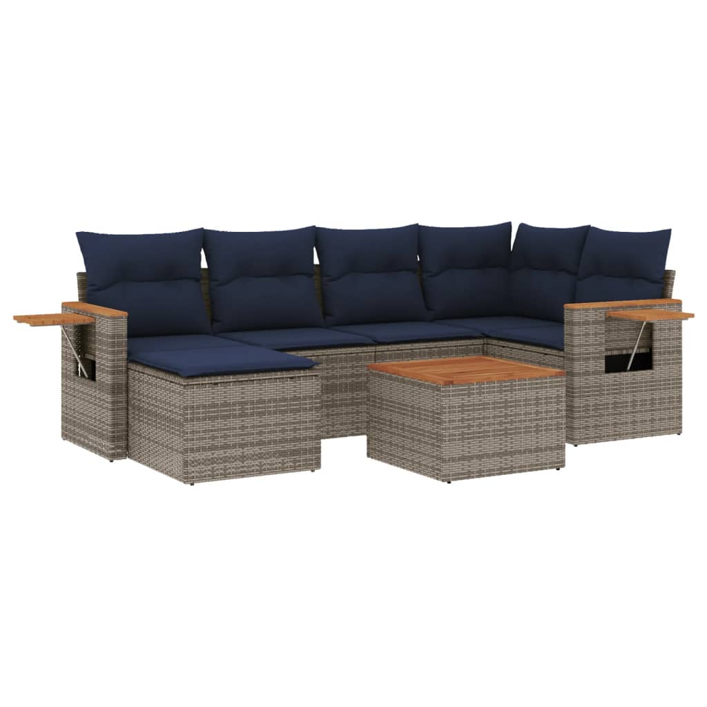 Set de sofás de jardín 7 pzas con cojines ratán sintético gris
