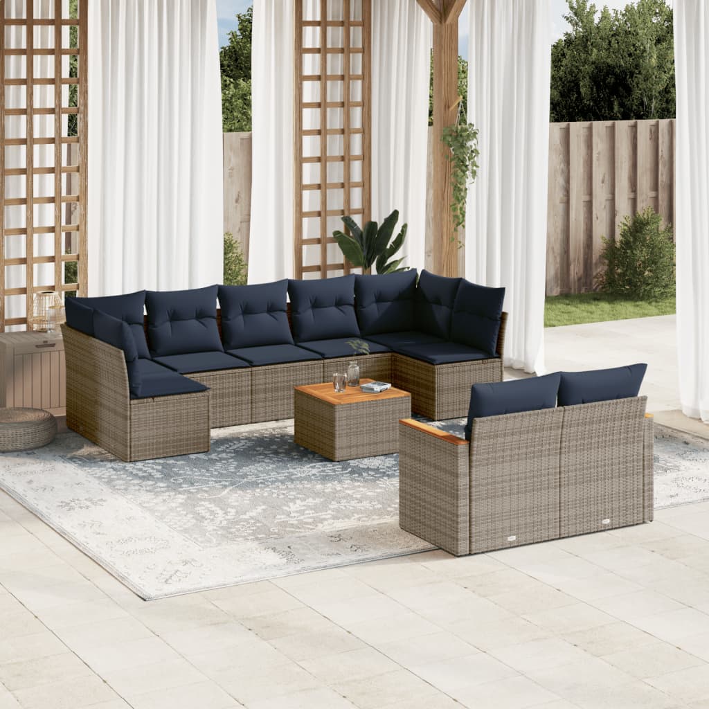 Set de sofás de jardín 11 pzas y cojines ratán sintético gris