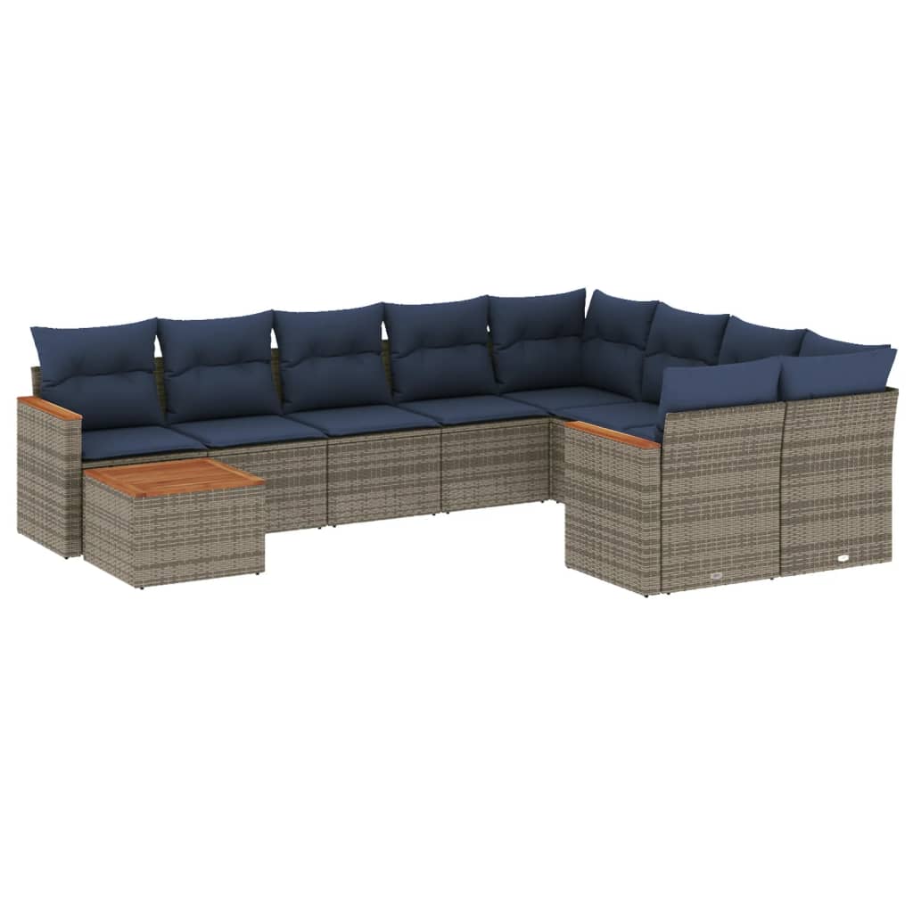 Set de sofás de jardín 10 pzas con cojines ratán sintético gris