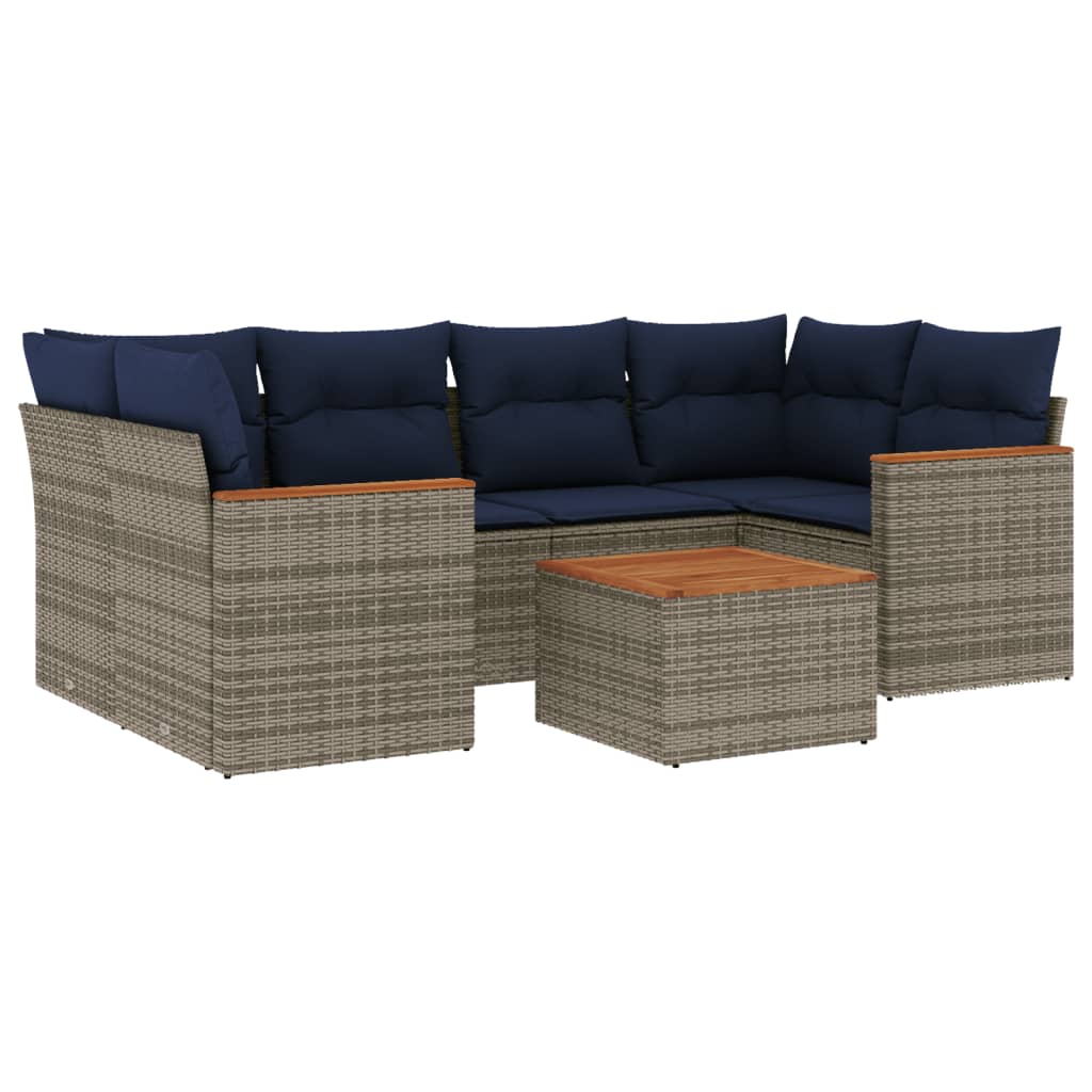 Set de sofás de jardín 7 pzas con cojines ratán sintético gris