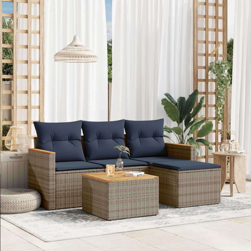Set de sofás de jardín 5 pzas con cojines ratán sintético gris
