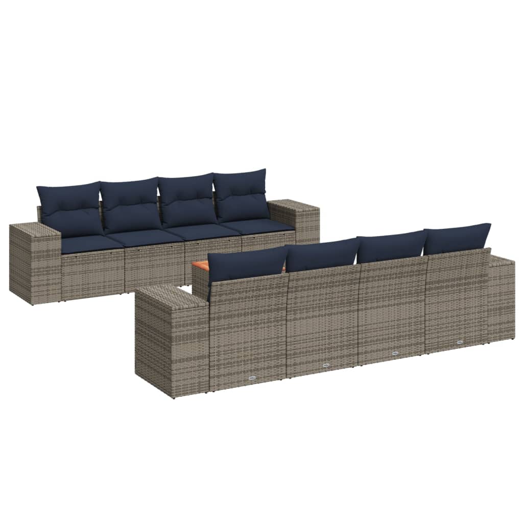 Set de sofás de jardín 9 pzas con cojines ratán sintético gris