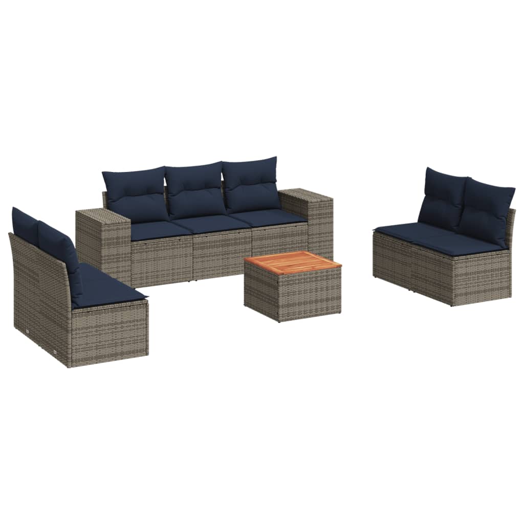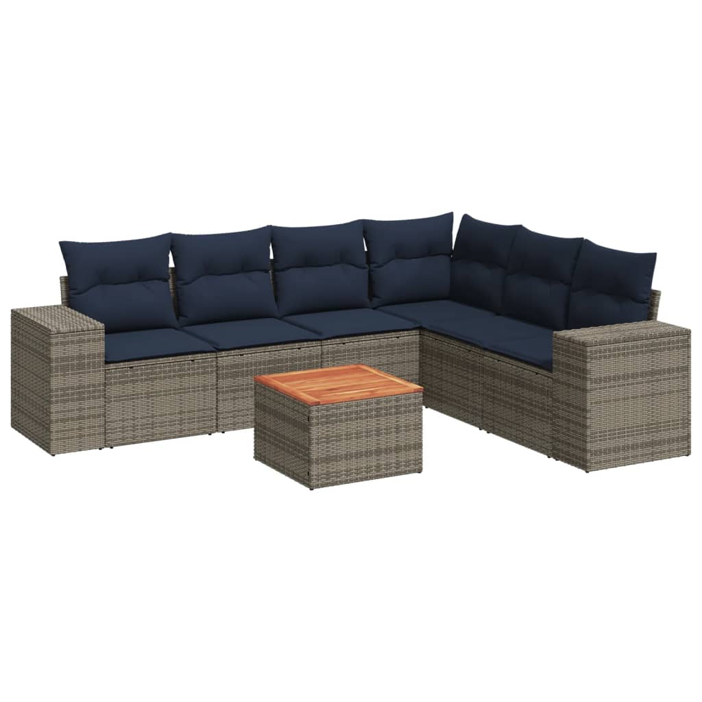 Set de sofás de jardín 7 pzas con cojines ratán sintético gris