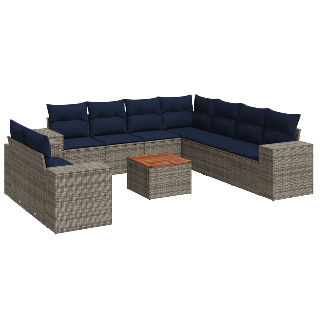 Set de sofás de jardín 11 pzas y cojines ratán sintético gris