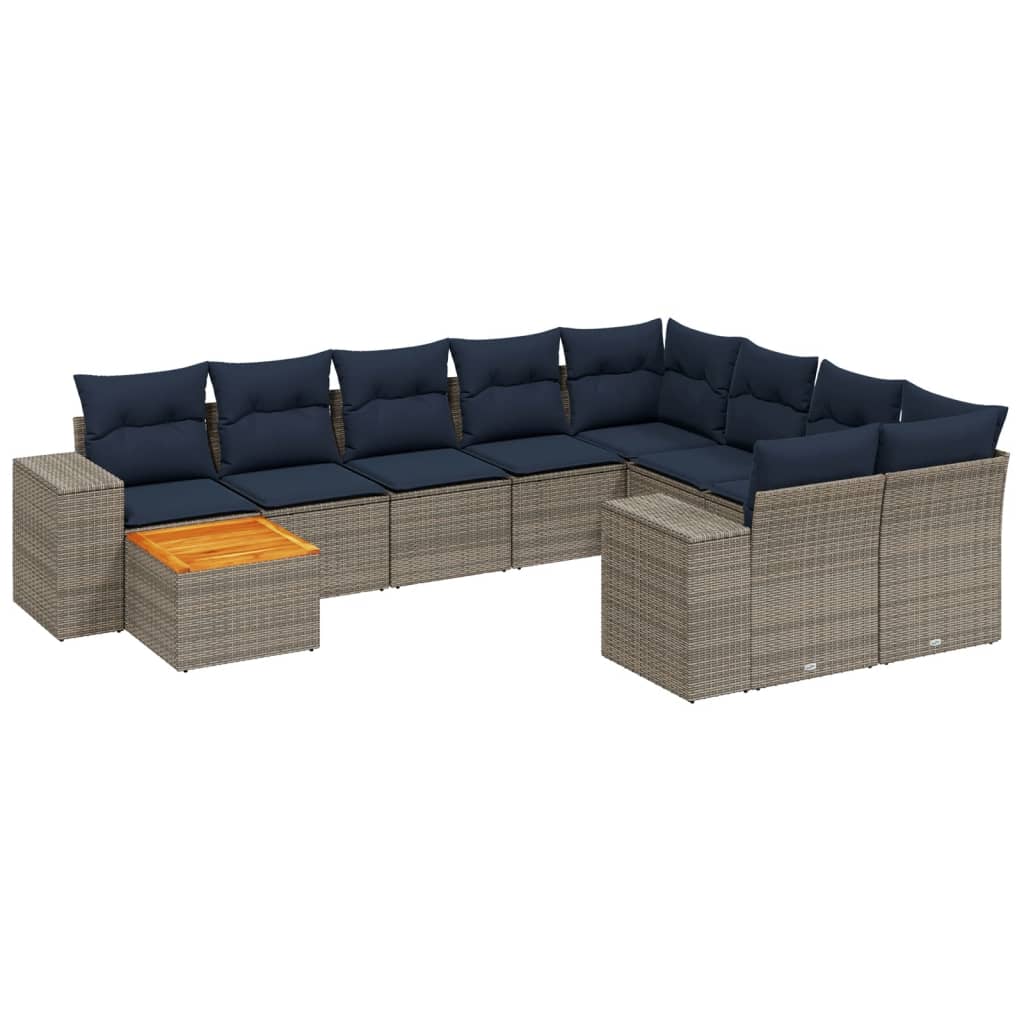 Set de sofás de jardín 10 pzas con cojines ratán sintético gris