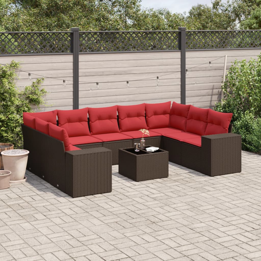 Set de sofás de jardín 10 pzas y cojines ratán sintético marrón