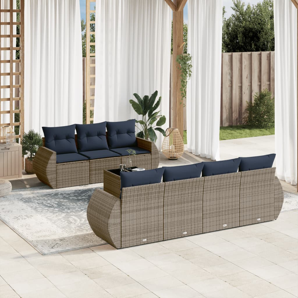 Set de sofás de jardín 8 pzas con cojines ratán sintético gris