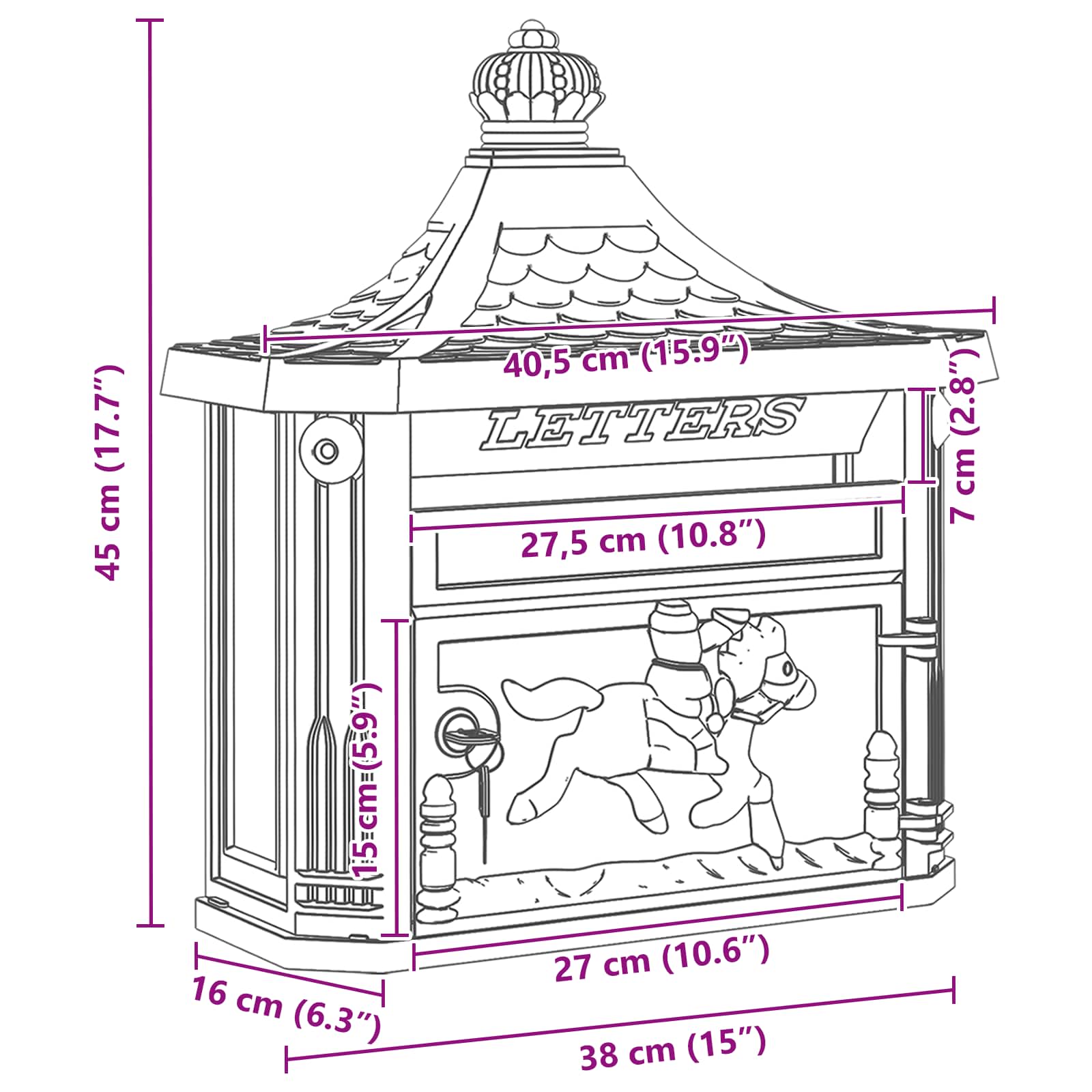 Este buzón de pared vintage es más que decorativo; le da un toque atemporal a cualquier jardín o terraza. Está diseñado para realzar tus espacios exteriores con ese estilo nostálgico, brindando una forma elegante de recibir cartas y paquetes de manera segura. Su look clásico se adapta tanto a estilos tradicionales como modernos, aportando un aire de sofisticación y practicidad. Tanto tú como tus invitados van a notar su carácter especial y la utilidad que suma a cualquier entrada. Construcción de Aluminio Fundido Este buzón vintage está hecho de aluminio fundido de alta calidad, lo que lo hace muy resistente y perfecto para el exterior. Soporta varias condiciones climáticas, así que puedes estar tranquilo con su durabilidad. Funcionalidad de Cerradura Confiable Viene con cerraduras de leva que mantienen tu correo seguro. Estas cerraduras son fáciles de usar pero efectivas, así que tu correspondencia permanecerá a salvo hasta que la recojas. Diseño Impermeable Hecho para uso exterior, protege tus cartas de la lluvia y humedad gracias a sus materiales impermeables. Esto es clave para mantener tu correo en buen estado. Atractivo Estético Vintage Este buzón aporta un estilo retro que da personalidad a cualquier lugar exterior. Su diseño clásico combina genial con diferentes estilos arquitectónicos, realzando el atractivo visual de tu entrada o jardín con elegancia. Mantenimiento Sencillo Necesita poco mantenimiento, solo limpiarlo con un paño húmedo. Así de fácil para que siempre se vea bien y puedas disfrutar de su funcionalidad.