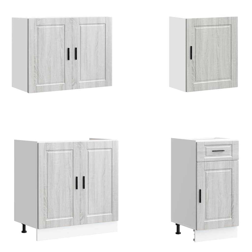 Este juego de gabinetes de cocina de 7 piezas, con su elegante diseño, optimiza el espacio de tu cocina y proporciona un amplio espacio de almacenamiento para tus pertenencias. Material estable y duradero: La madera de ingeniería es un material duradero y estable con una superficie lisa que es resistente a la humedad, la deformación y el agrietamiento, lo que la convierte en una opción confiable para una variedad de proyectos.Amplio espacio de almacenamiento: El juego de gabinetes de cocina tiene muchos compartimentos y ofrece suficiente espacio para guardar tazones, platos, ollas y otros utensilios de cocina.Patas ajustables: Los gabinetes inferiores cuentan con patas ajustables que se pueden regular en altura para adaptarse a la distribución de tu cocina.Fácil mantenimiento: Gracias a su superficie lisa, estos gabinetes de cocina son fáciles de limpiar con un paño húmedo y requieren poco mantenimiento. Advertencia:Este producto debe fijarse instalando un Encimera. Información útil:Los tornillos y tacos para el interior de la pared no están incluidos. Busque y utilice tornillos y tacos adecuados para sus paredes. Si tiene dudas, consulte con un profesional. Lea y siga atentamente cada paso de las instrucciones.La encimera, el fregadero y el grifo no están incluidos en el envío.