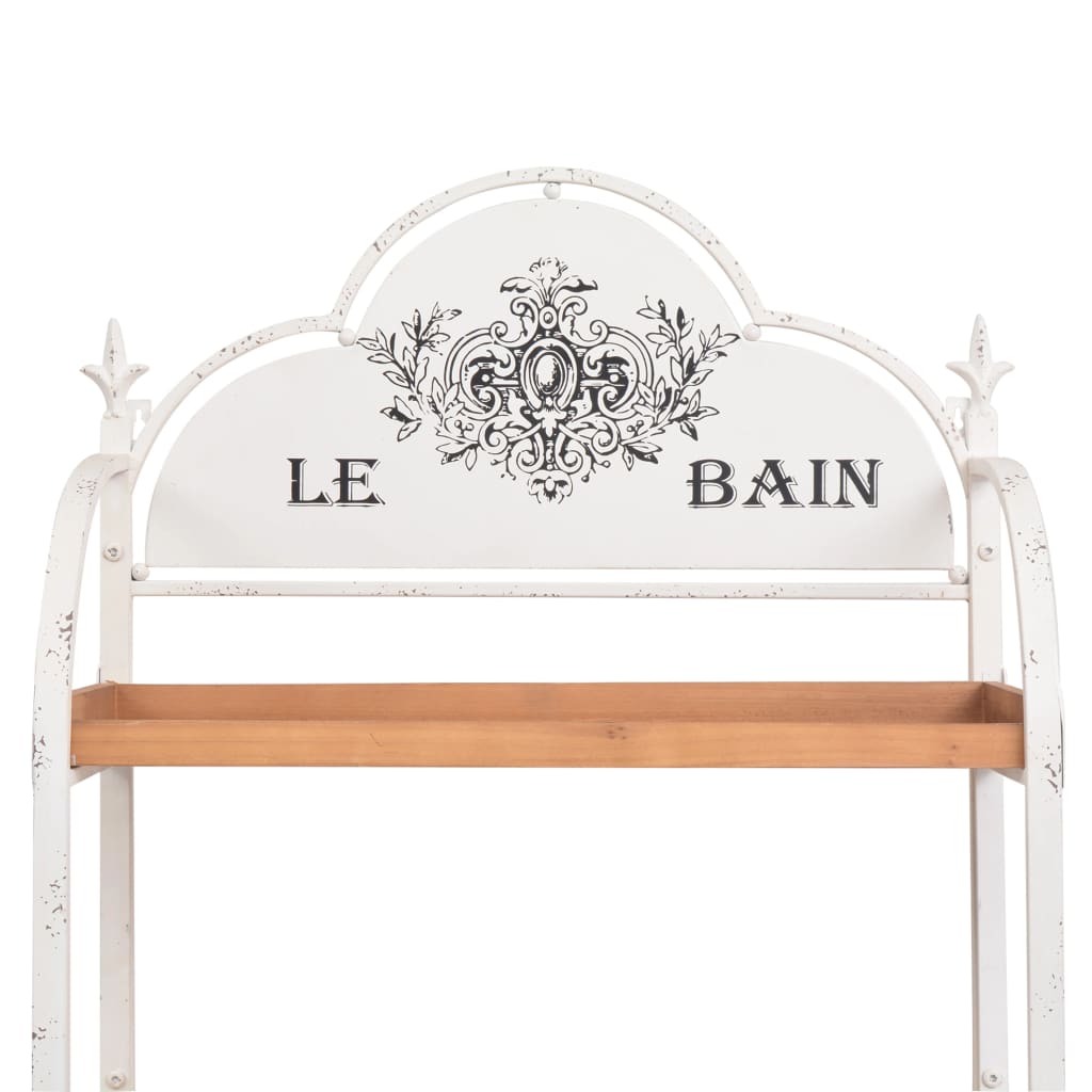Esta hermosa estantería tiene un diseño romántico de estilo vintage y será un excelente aporte para la decoración de su hogar. Como su impresión retro sugiere, será ideal para el baño pero, por supuesto, también se puede usar en otras habitaciones. La estantería de baño independiente tiene una estructura construida en acero y 4 estantes de madera de abeto maciza que tienen un amplio espacio para sus toallas y productos de aseo. Si se usa en la sala de estar o en un dormitorio, los estantes son ideales para libros, artículos decorativos o incluso ropa. En la cocina, en esta estantería rústica se pueden colocar suministros y aparatos de cocina. La combinación de madera y acero se suma al estilo vintage y romántico de la estantería. El montaje es fácil.