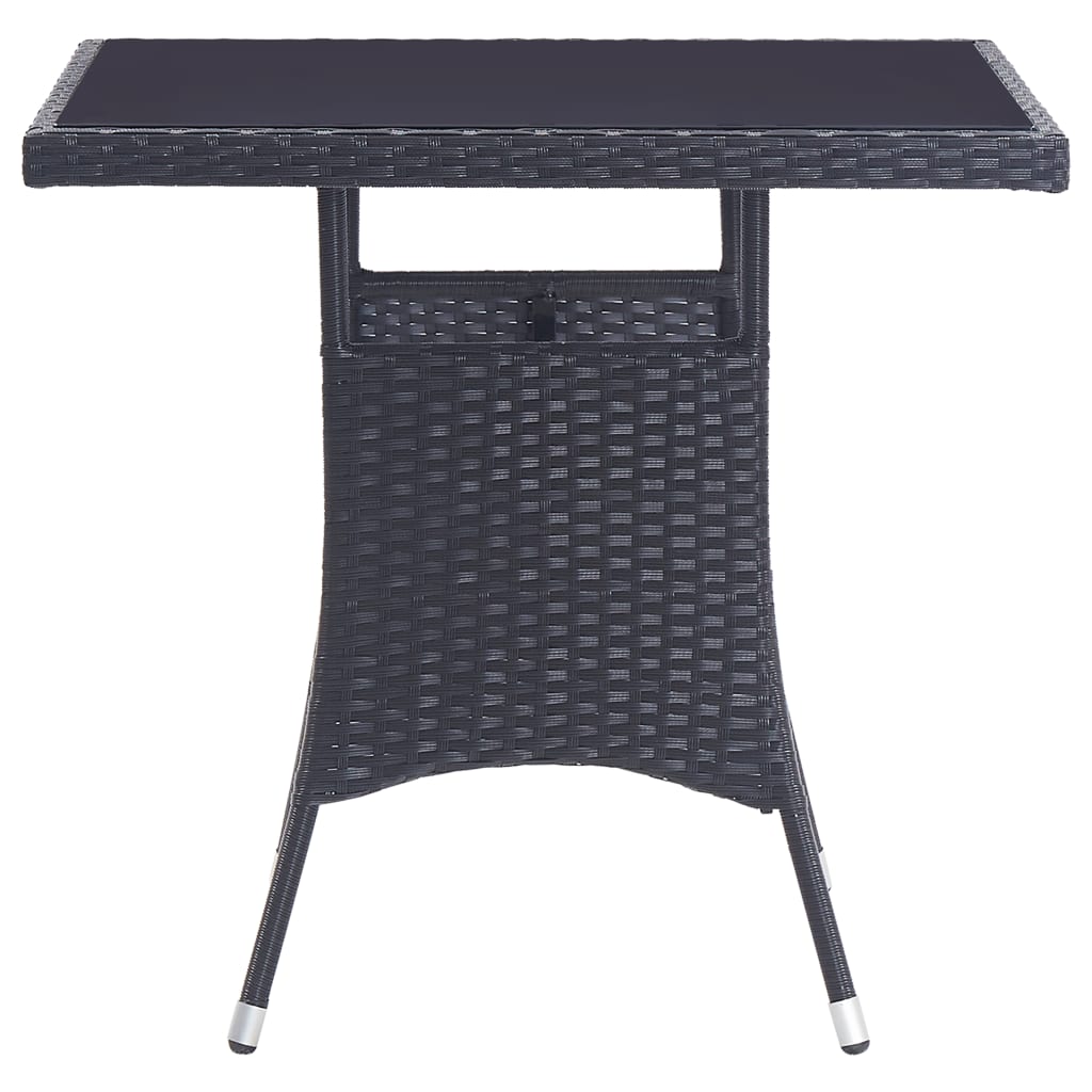Este set de muebles de ratán para jardín, de diseño elegante, se convertirá en el punto de atracción de tu jardín, terraza o patio. Hecho de resistente e impermeable ratán PE y con una encimera de vidrio templado, el conjunto de comedor para exterior es fácil de limpiar, resistente y adecuado para el uso diario. La estructura de acero con recubrimiento en polvo hace que la mesa y las sillas sean muy resistentes y duraderas. Gracias a su construcción ligera, todos los elementos son fáciles de mover. Los cojines gruesos y extraíbles del asiento son muy cómodos. Las fundas de los cojines tienen cremalleras y se pueden quitar y lavar fácilmente. La entrega incluye 1 mesa con encimera de cristal, 4 sillas de ratán y 4 cojines para los asientos. Nota: Te recomendamos tapar el mueble en condiciones de lluvia, nieve y heladas.