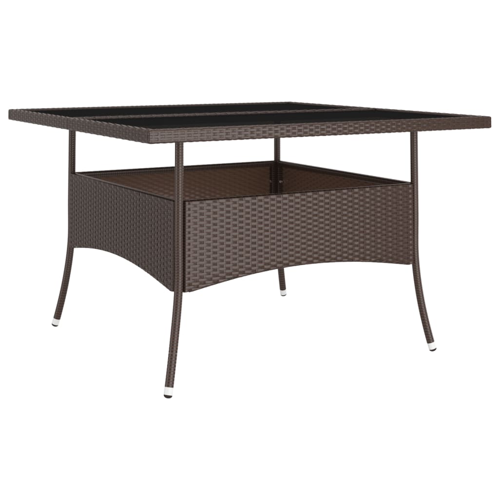Este elegante juego de comedor para el jardín te brinda momentos agradables y cómodos con tu familia y amigos. Con una estructura de acero con recubrimiento en polvo cubierta con ratán PE resistente a la intemperie y protección UV, la mesa y las sillas son duraderas y estables. Diseñadas con reposabrazos y respaldo curvado, las sillas son muy cómodas. Se incluyen cojines para una mayor comodidad y la funda de cremallera se puede quitar para facilitar la limpieza. La superficie de la mesa está hecha de vidrio templado reforzado con un soporte fuerte, por lo que es fácil de limpiar y de cuidar. Los cuatro reposapiés también pueden servir de asiento. Asimismo, la construcción ligera hace que cada pieza sea fácil de mover, reorganizar y transportar. Nota: Para prolongar la vida de tus muebles de exterior, te recomendamos que los protejas con una funda impermeable.
