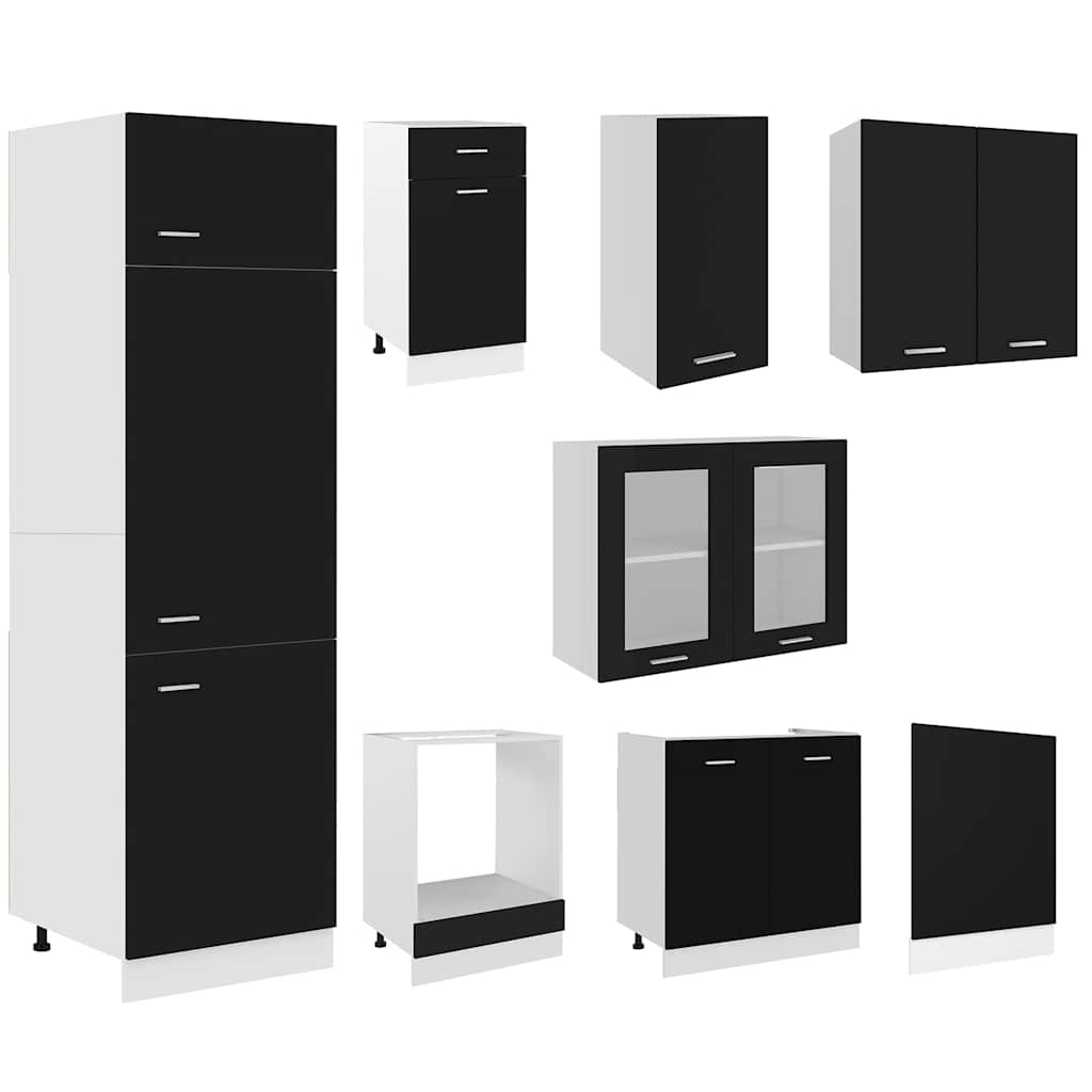Este juego de 8 armarios de cocina, con un diseño elegante, optimiza el espacio de la cocina y ¡proporciona amplio espacio de almacenaje para tus cosas! Estos armarios son duraderos y útiles, y mantienen la cocina más ordenada. También ofrecen espacio suficiente para guardar boles, platos, ollas y otros aparatos de cocina. El panel para lavavajillas posee un diseño sencillo y protege el lavavajillas. Además, este set es fácil de limpiar con un paño húmedo. Ten en cuenta que la encimera, grifería, fregadero y electrodomésticos no están incluidos en la entrega.