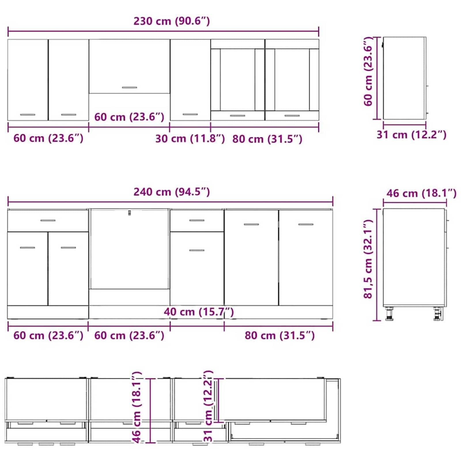 Este conjunto de gabinetes de cocina contemporáneos agrega un toque moderno a cualquier cocina y maximiza el espacio de almacenamiento al mismo tiempo. Con su diseño rectangular y estiloso, es la representación del estilo moderno y la practicidad, ideal para el propietario exigente. Las líneas limpias y el mínimo adornado del conjunto complementan el ambiente contemporáneo, haciéndolo una adición perfecta para una cocina actual. Imagina tener todos tus utensilios y ingredientes en su lugar, disminuyendo el desorden y mejorando la eficiencia en tu cocina. La apariencia general del gabinete mejora el ambiente mientras ofrece una solución práctica a tus necesidades de almacenamiento. Madera Elaborada Duradera: Cada gabinete está hecho de madera elaborada de alta calidad, que resiste el uso diario y asegura un servicio prolongado con una apariencia suave y contemporánea, perfecta para tu cocina moderna. Diseño de Componentes Completo: Este conjunto tiene puertas de bisagra, estantes de tablero y cajones diseñados para tus necesidades de almacenamiento. Los interiores de los cajones permiten un fácil acceso a tus utensilios, mientras que los estantes ofrecen una colocación organizada de ingredientes y electrodomésticos. Las puertas brindan un aspecto limpio y un funcionamiento suave. Tiradores de Barra Agarrables: Los tiradores largos y rectos son ergonómicos, facilitando la apertura y el cierre. Están pensados para complementar el diseño moderno de la cocina, dando tanto funcionalidad como estilo. Características de Montaje en Pared que Ahorran Espacio: La opción de montaje en pared maximiza el espacio en el suelo, dándole un aspecto ordenado a tu cocina. Esto no solo mejora la estética, sino que también hace que sea más fácil limpiar y mantener. Cuidado y Mantenimiento Prácticos: Para que mantenga su aspecto, limpia con un paño seco. El ensamblaje es sencillo, solo necesitas dos personas y un destornillador, lo que hace que sea fácil de instalar.