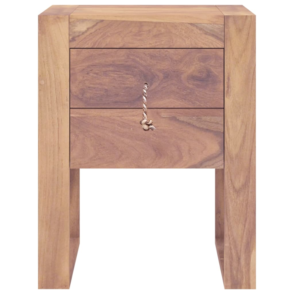 Esta mesita de noche de estilo colonial está hecha de madera maciza de teca. Emana un encanto rústico y será un gran aporte para tu hogar. La mesita de noche tiene una robusta superficie de madera maciza, en la que puedes colocar una lámpara de noche, un despertador o cualquier otra cosa que puedas necesitar cerca de la cama. El cajón ofrece un amplio espacio donde guardar todo tipo de artículos pequeños de forma organizada y al alcance de la mano.