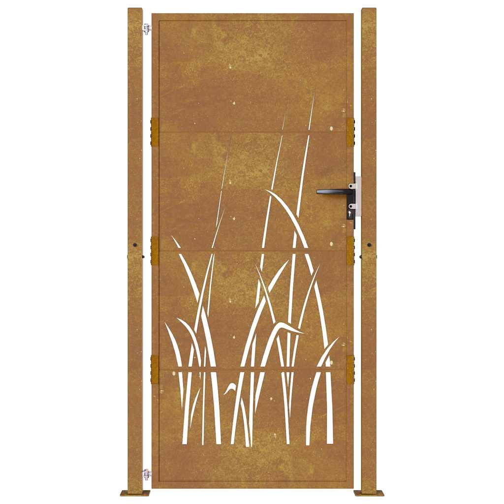 Esta puerta de jardín, que es la combinación perfecta de fuerza y elegancia, es un punto de entrada ideal para la cerca que rodea el jardín o el patio. Construcción resistente: Esta puerta de valla está hecha de acero corten. El acero corten también es conocido como acero resistente a la corrosión atmosférica. Es anticorrosivo por naturaleza. Desarrolla una capa protectora oxidada contra la corrosión cuando se expone por primera vez a las condiciones atmosféricas. Por lo tanto, no es necesario pintarlo. Esto puede ayudarte a ahorrar en costes de mantenimiento y reparación. El distintivo color marrón del acero corten sin duda llamará la atención. Asimismo, el acero corten es muy duradero y resistirá la prueba del tiempo.Diseño recortado a láser: La puerta de seguridad tiene un bonito diseño recortado a láser que da un encanto único a la casa.Sistema con cierre: La puerta de exterior está equipada con un sistema de cierre para una mayor seguridad.Fácil de montar: La puerta de entrada viene completa con dos postes con platabandas y accesorios de montaje para instalarla con facilidad. Información útil:Cuando recibas este producto, aún no estará oxidado y tendrá un color metálico normal, pero se oxidará con el tiempo. Puedes acelerar el proceso de oxidación pulverizándolo con agua jabonosa y agua salada. Para que no se te manche la ropa, evita el contacto con la capa de óxido en desarrollo.