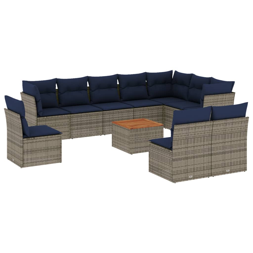 Este conjunto de sofás de jardín es el complemento perfecto para el jardín, terraza o patio, ya que proporciona un espacio confortable y acogedor para charlar con familiares y amigos o simplemente relajarte y disfrutar del aire libre. Material duradero: El ratán PE, también conocido como ratán sintético, es un material sintético resistente y de bajo mantenimiento que se parece al ratán natural. Es ligero, fácil de limpiar y se usa comúnmente para muebles de exterior debido a su durabilidad y propiedades resistentes a la intemperie.Experiencia de asiento cómoda: Estos muebles de exterior, completos con cojines acolchados gruesos, ofrecen una experiencia de asiento cómoda.Superficie estable y fácil de limpiar: Esta mesa de jardín tiene una superficie de madera de acacia que es resistente, duradero y fácil de limpiar con un paño húmedo.Funda desenfundable y lavable: Estos cojines de asiento cuentan con fundas desenfundables para facilitar el lavado y mantenimiento.Diseño modular: Este conjunto de muebles de exterior tiene un diseño modular, por lo que es completamente flexible y fácil de mover, para que puedas crear una disposición de muebles de exterior personalizada. Información útil:Para asegurarte de que tus muebles de exterior se mantengan hermosos, recomendamos protegerlos con una funda impermeable.