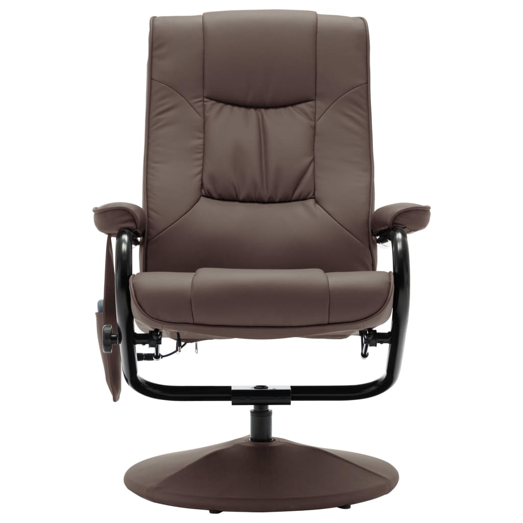 Relájate en este sillón de masaje ajustable de cuero sintético de calidad con un taburete para los pies. Ofrece notas de lujo y glamour que serán la opción ideal para relajarse en la sala de estar. Este sillón de masaje de piel sintética, que incluye un taburete para los pies, combina estilo y funcionalidad. El set presenta una resistente estructura de madera y metal, relleno de espuma de alta densidad y cubierto de cuero artificial de calidad para una comodidad máxima. El grueso asiento y el suave respaldo son muy cómodos. Además, cuando el respaldo se reclina, puedes poner los pies en nuestro cómodo reposapiés. Con un masaje de 8 puntos, un respaldo con calor y un mando a distancia incluido, puedes olvidarte rápidamente de las tensiones de la vida cotidiana. Este lujoso sillón giratorio es la mejor opción para el despacho de casa o para el cuarto de estudio. Experimenta una comodidad óptima en este cómodo conjunto de sillón reclinable y reposapiés. Nota: El producto tiene un conector USB, pero la fuente de alimentación USB de 5V certificada no está incluida.