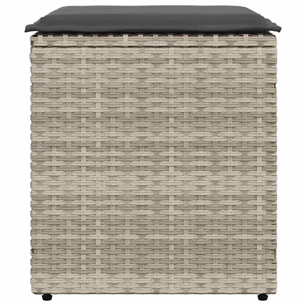 ¡Relájate y disfruta del aire libre en estos cómodos taburetes de jardín! Material duradero: El ratán sintético, también conocido como ratán sintético, es un material sintético resistente y de bajo mantenimiento que se parece al ratán natural. Es ligero, fácil de limpiar y se usa comúnmente para muebles de exterior debido a su durabilidad y propiedades resistentes a la intemperie.Función de almacenamiento: el asiento de jardín cuenta con espacio de almacenamiento debajo, equipado con una bolsa resistente al agua para guardar cojines, juguetes y otros artículos. La bolsa interior puede fijarse firmemente al asiento con cierres autoadherentes, lo que garantiza la estabilidad y evita que se mueva.Fácil acceso: la tapa se puede abrir y cerrar fácilmente utilizando su mecanismo de cuerda y gancho, lo que garantiza un acceso rápido y cómodo.Experiencia de asiento cómoda: Este mueble de exterior, completo con un cojín acolchado grueso, ofrece una experiencia de asiento cómoda.Funda extraíble y lavable: El cojín del asiento cuenta con una funda extraíble para facilitar el lavado y mantenimiento. Información útil:Para asegurarte de que tus muebles de exterior se mantengan hermosos, recomendamos protegerlos con una funda impermeable.